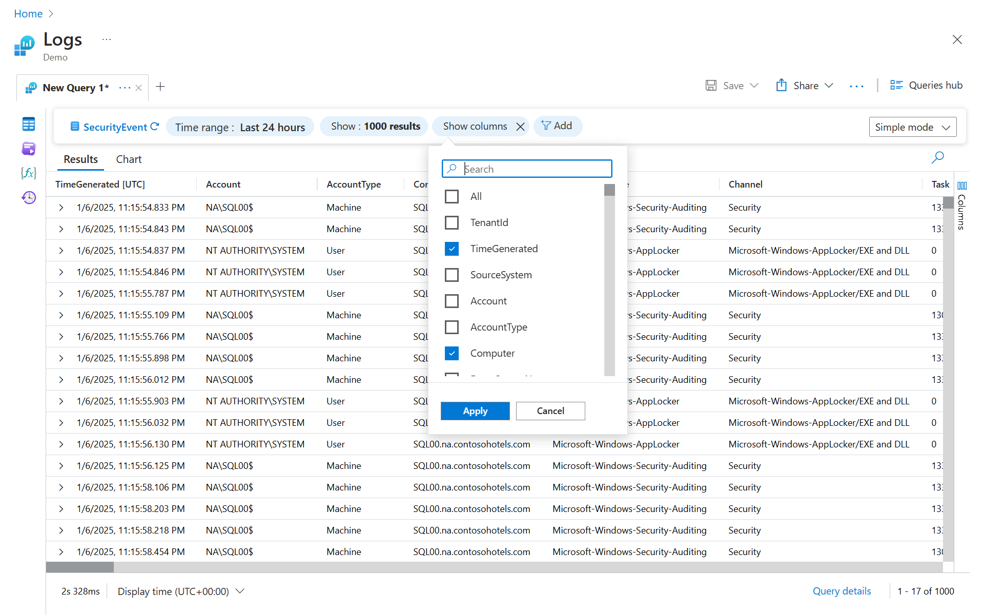 Computer和TimeGenerated原始列。 - 将