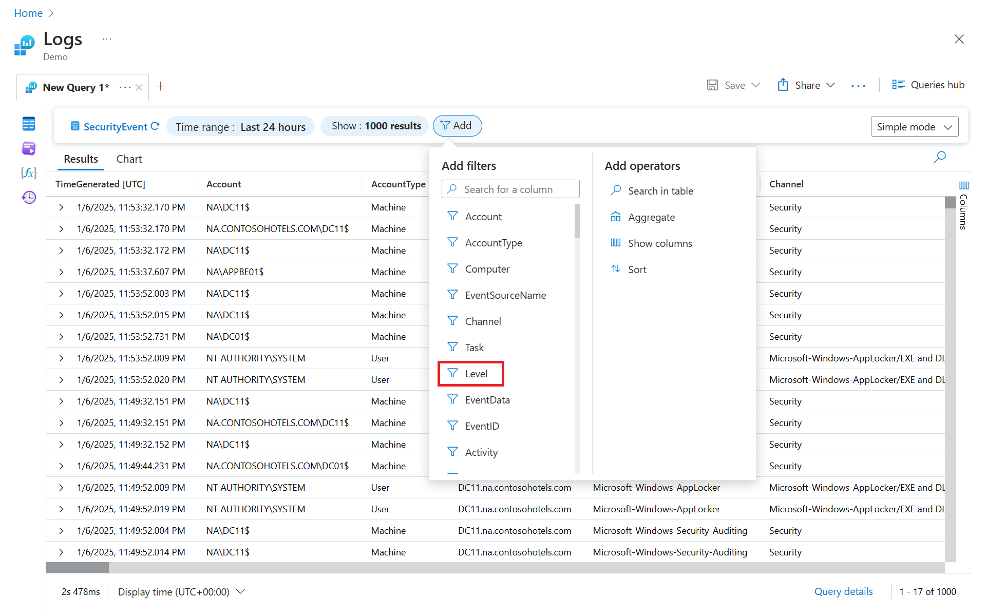 | where Level == 8 and EventID == 4672