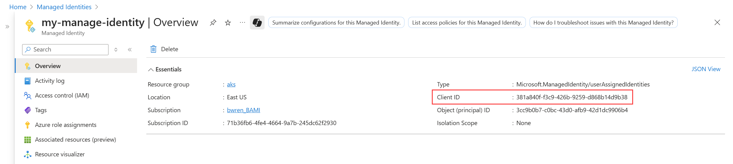 对于 AKS 群集,必须将托管标识分配给群集中的虚拟机规模集。 AKS 创建包含虚拟机规模集的资源组。 从 Azure 门户群集菜单中的 “属性” 页访问此资源组。 单击 “基础结构资源组 ”以查看此资源组中的资源列表。 必须为资源组中的每个虚拟机规模集启用系统分配的标识。