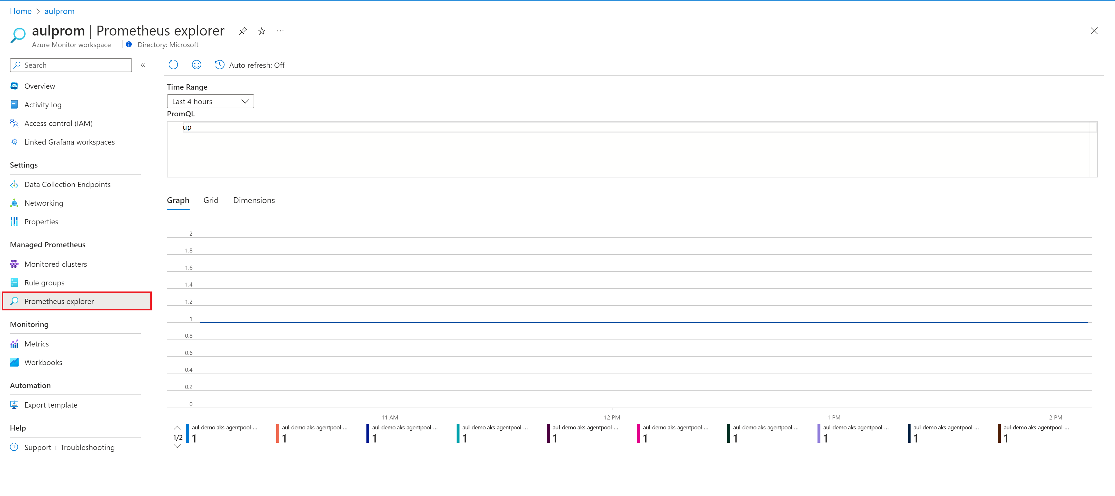在 Azure Monitor 工作区的 “概述 ”页上,选择 “Prometheus 资源管理器”。