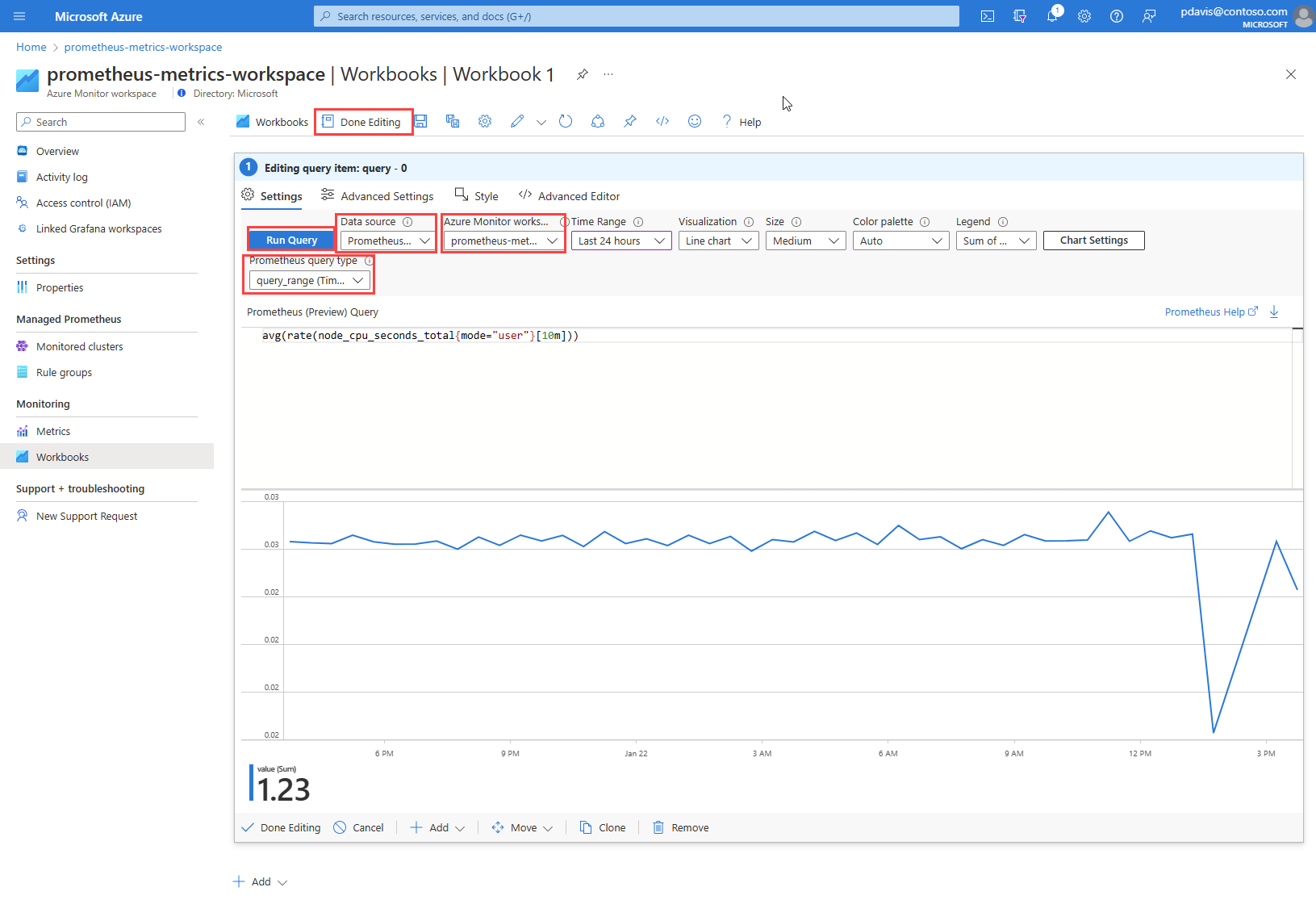 通过使用 Azure 工作簿,创建由 Azure Monitor 托管服务为 Prometheus 提供支持的仪表板。 本文介绍 Azure Monitor 工作区的工作簿,并演示如何使用 Azure 工作簿和 Prometheus 查询语言(PromQL)查询 Prometheus 指标。