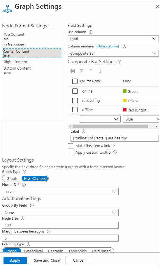 若要制作用于图形可视化效果(类型为 Hive 群集)的复合条呈现器,请执行以下操作: