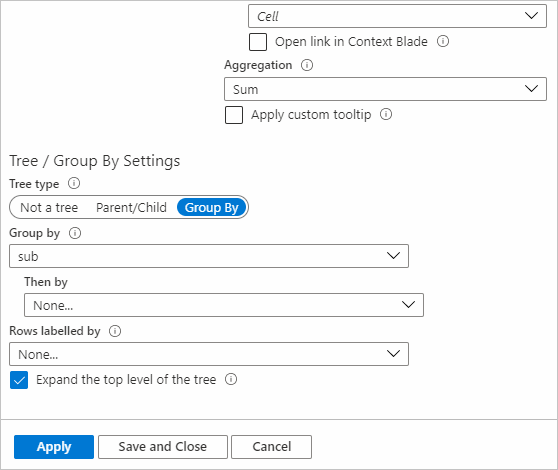 聚合对于“树/分组依据”可视化效果很有用。 组行的列数据由相应列的聚合集决定。 三种类型的聚合适用于复合条:无、总和与继承。