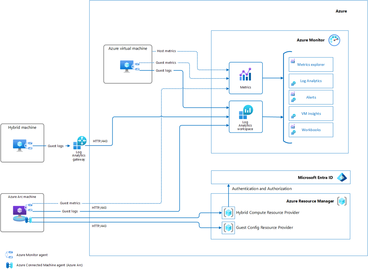 混合计算机指的是在Azure之外运行的任何计算机。 它可以是在另一个云中运行的虚拟机,或是托管提供的虚拟机,或是在数据中心内本地运行的虚拟或物理计算机。 在混合计算机上使用启用了 Azure Arc 的服务器,以便可以像Azure虚拟机一样管理它们。 可以使用Azure Monitor中的 VM 见解来使用相同的过程来启用对启用了Azure Arc的服务器监视,就像对Azure虚拟机所做的那样。 有关为Azure准备混合计算机的完整指南,请参阅 规划和部署Azure Arc-enabled服务器。 此任务包括启用单个计算机并使用 Azure Policy 大规模启用整个混合环境。