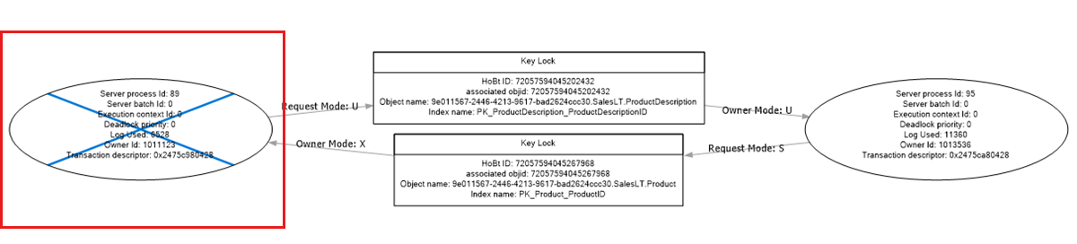 PK_Product_ProductID索引的聚集索引扫描。 死锁图指示此索引上的共享 (S) 锁等待是死锁中的组成部分。正在执行此索引扫描,因为我们的更新查询需要修改名为