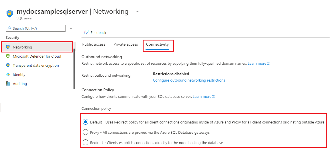 连接策略确定客户连接的方式。 我们强烈建议使用 Redirect 连接策略而不要使用 Proxy 连接策略,以最大程度地降低延迟和提高吞吐量。