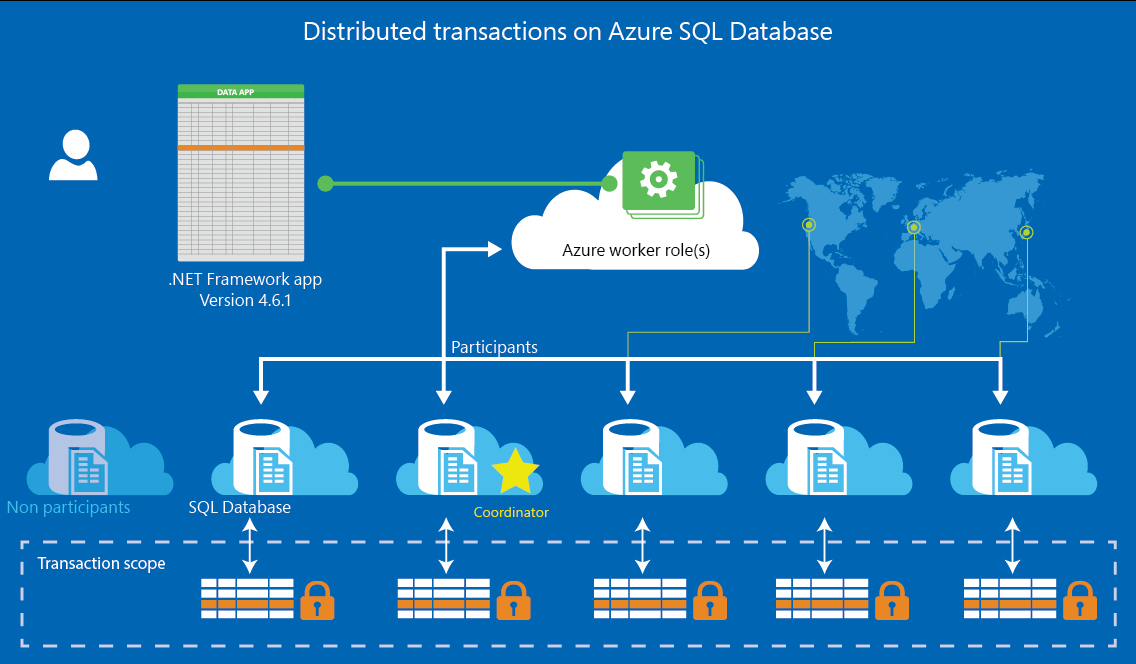 在本地,这种情况通常需要运行Microsoft分布式事务处理协调器(MSDTC)。 由于 MSDTC 不适用于 Azure SQL 数据库,协调分布式事务的功能已直接集成到 SQL 数据库和 SQL 托管实例中。 但是,对于 SQL 托管实例,还可以使用 Azure SQL 托管实例的分布式事务协调器(DTC) 在多个混合环境中运行分布式事务,例如跨托管实例、SQL Server、其他关系数据库管理系统(RDBMS)、自定义应用程序和任何环境中托管的事务参与者,这些事务参与者可以建立与 Azure 的网络连接。