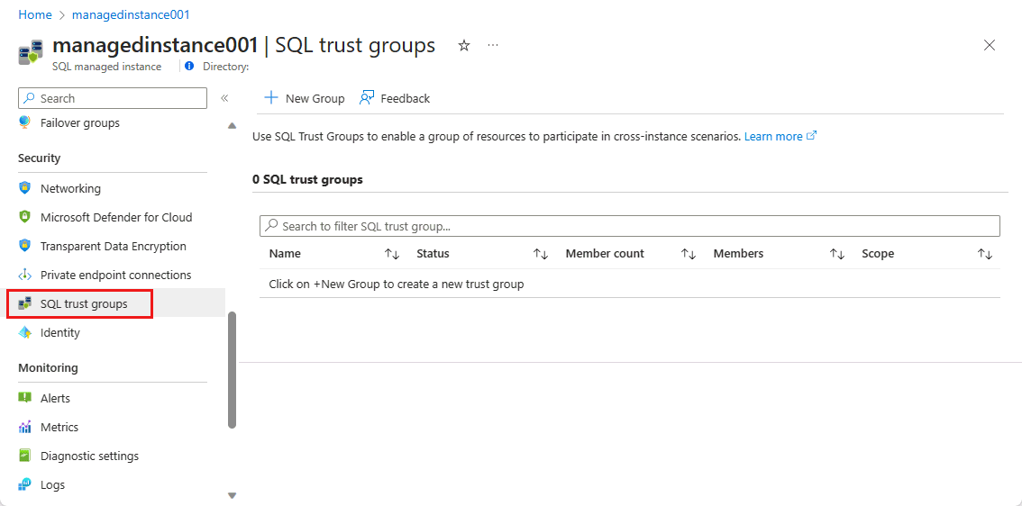 - Azure SQL 托管实例必须是 服务器信任组 的一部分才能参与分布式事务。