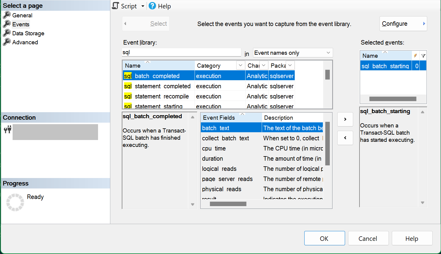 有关更详细的演练,请参阅在 SSMS中创建事件会话。