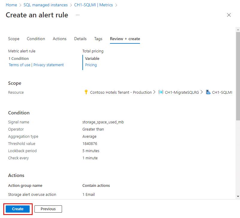 - 选择 “查看资源 > ”以查看触发警报的 SQL 托管实例。
