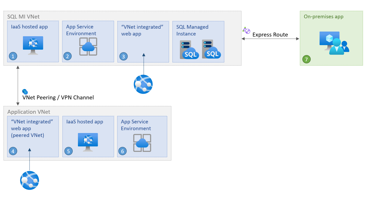 当应用程序与虚拟网络集成时,还可以连接由 Azure 应用服务托管的应用程序。 为此,请 从其他虚拟网络内选择 Connect 中列出的机制之一。 有关从虚拟网络外部访问 SQL 托管实例的数据,请参阅 在 Azure SQL 托管实例中配置公共终结点。