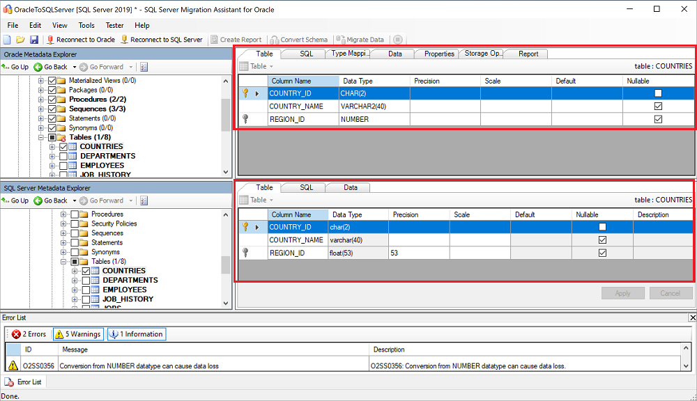 ADD_REGION和表REGION。若要了解详细信息,请参阅选择并配置要测试的对象 (OracleToSQL)