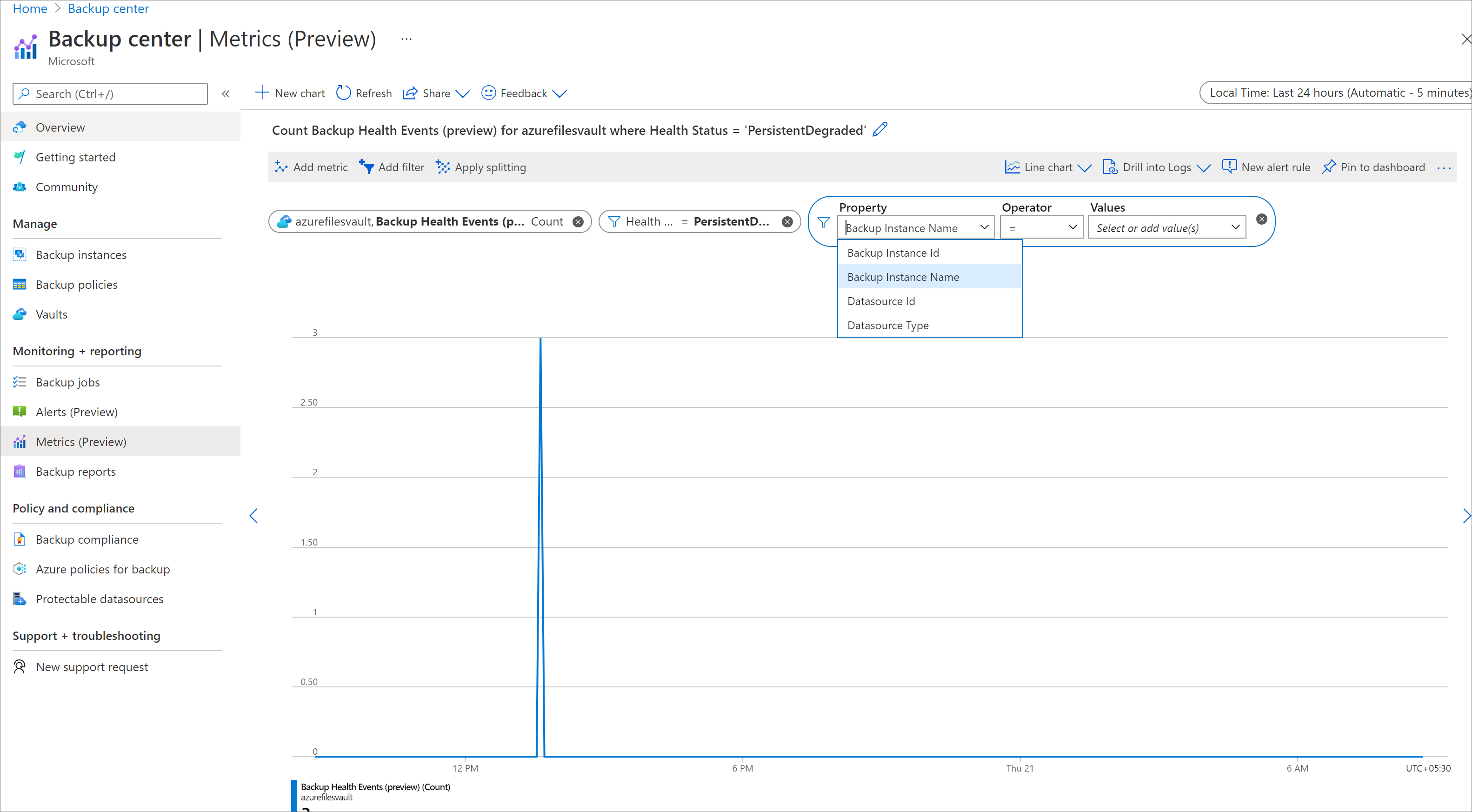 - 如果你从恢复服务保管库/ 进入“指标”,则指标范围会预先选定。