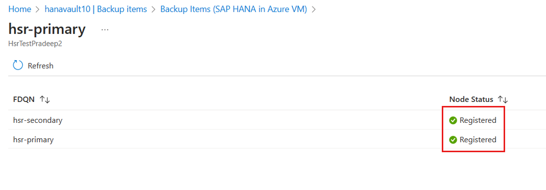 转到 Recovery services vault>Backup Items>SAP HANA in Azure VM。