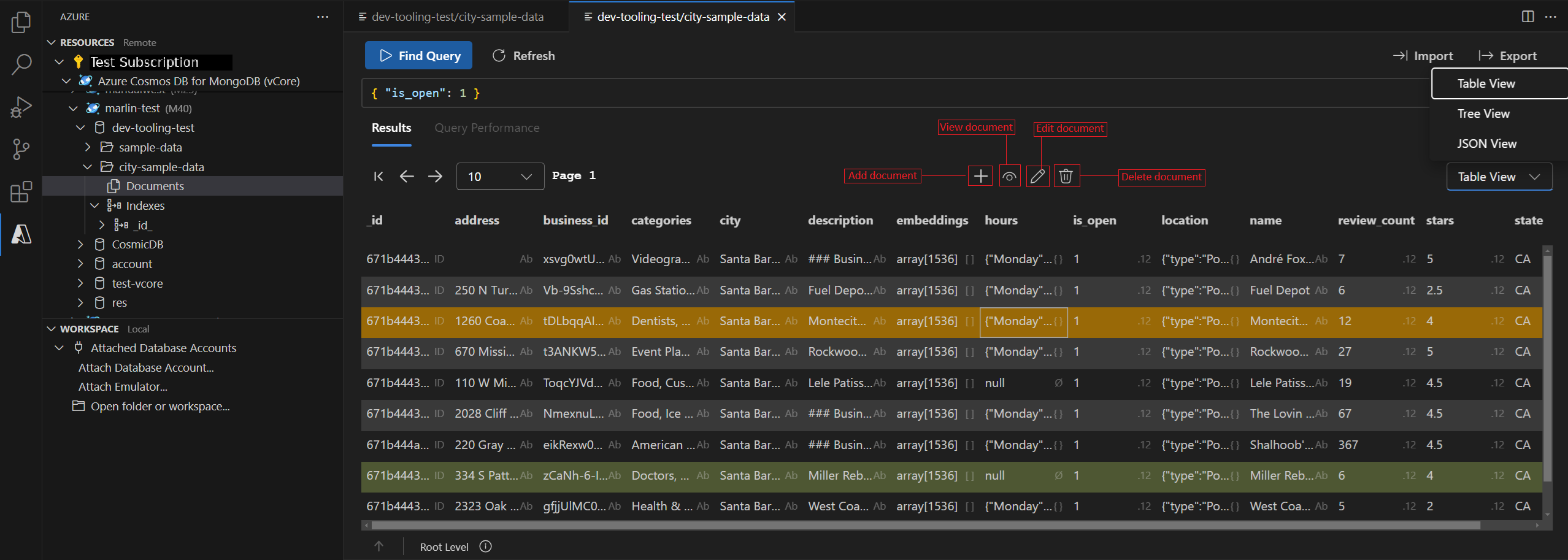 表视图:快速扫描数据并向下钻取到嵌套文档。