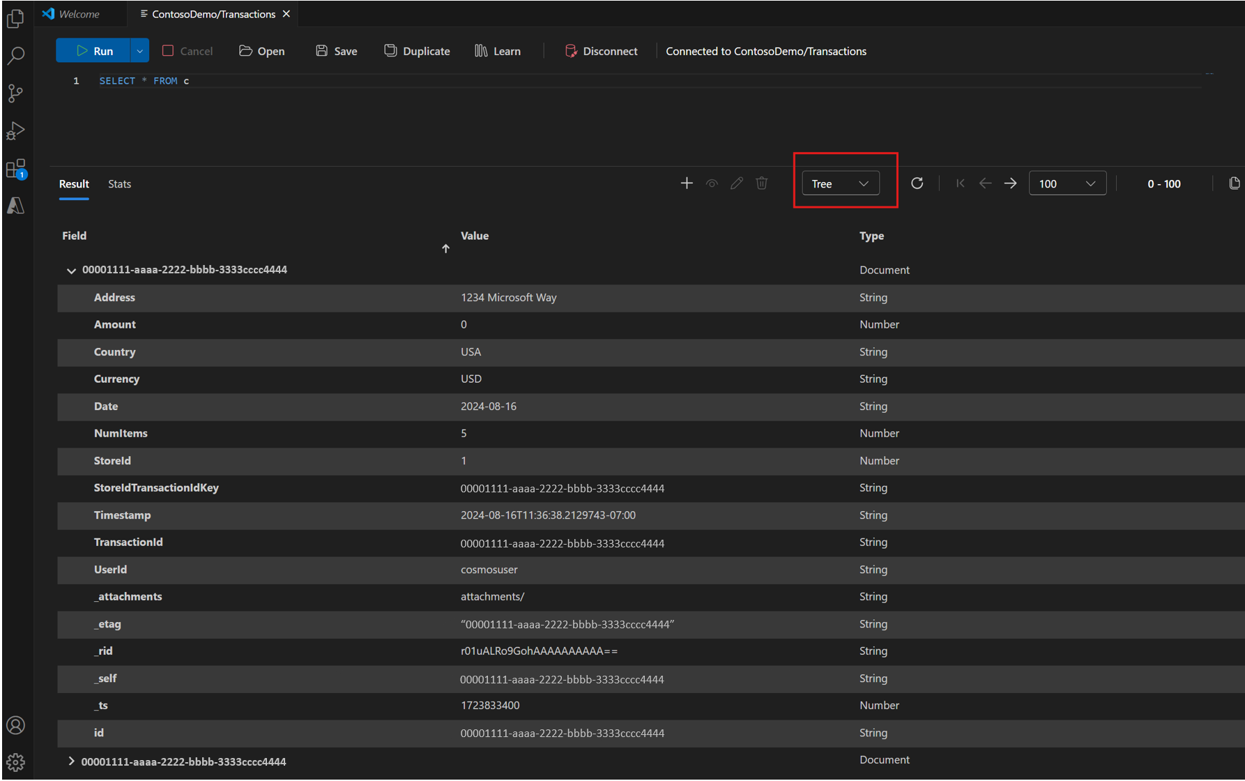 即时结果:立即以首选格式(表、JSON 或树状视图)查看查询结果。
