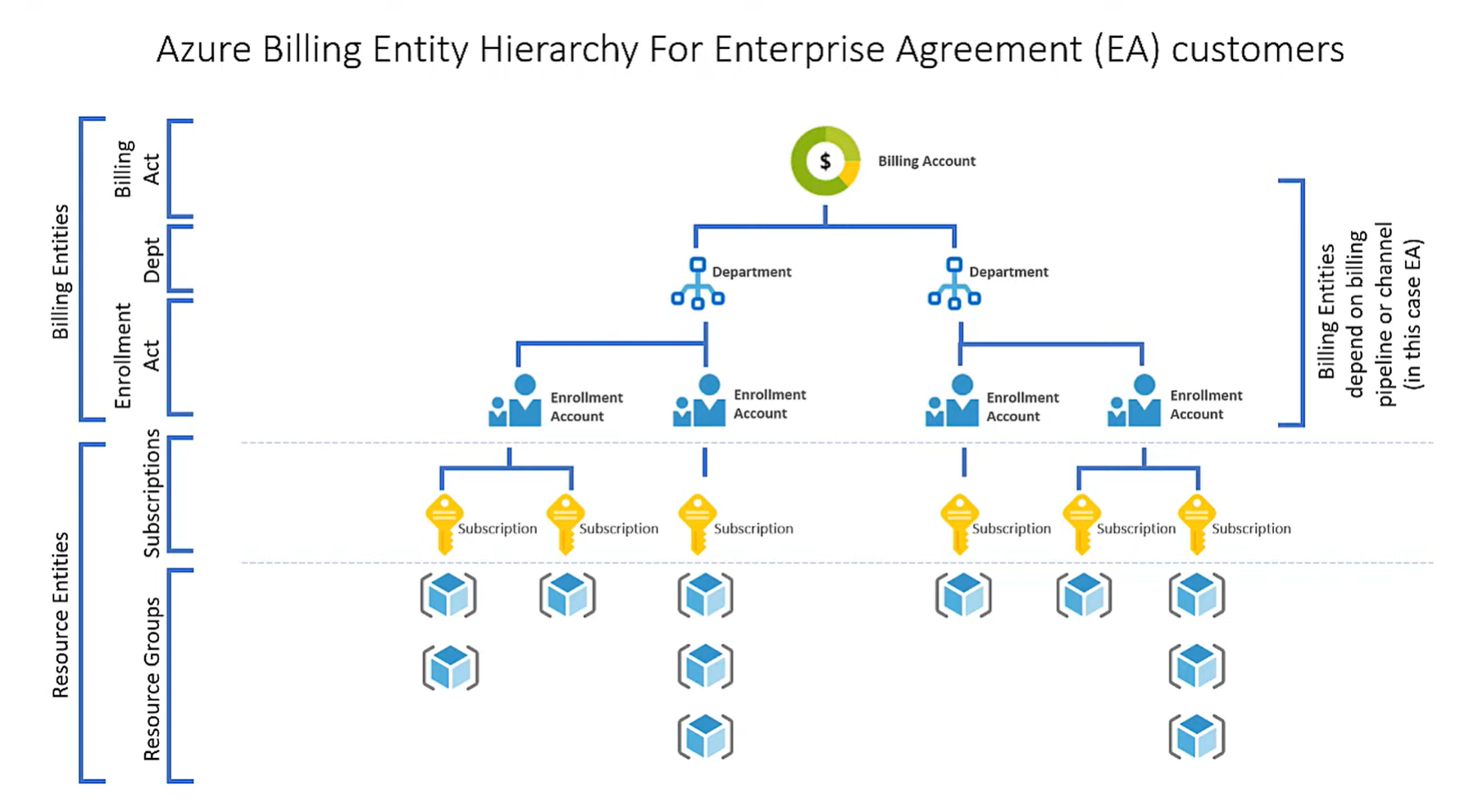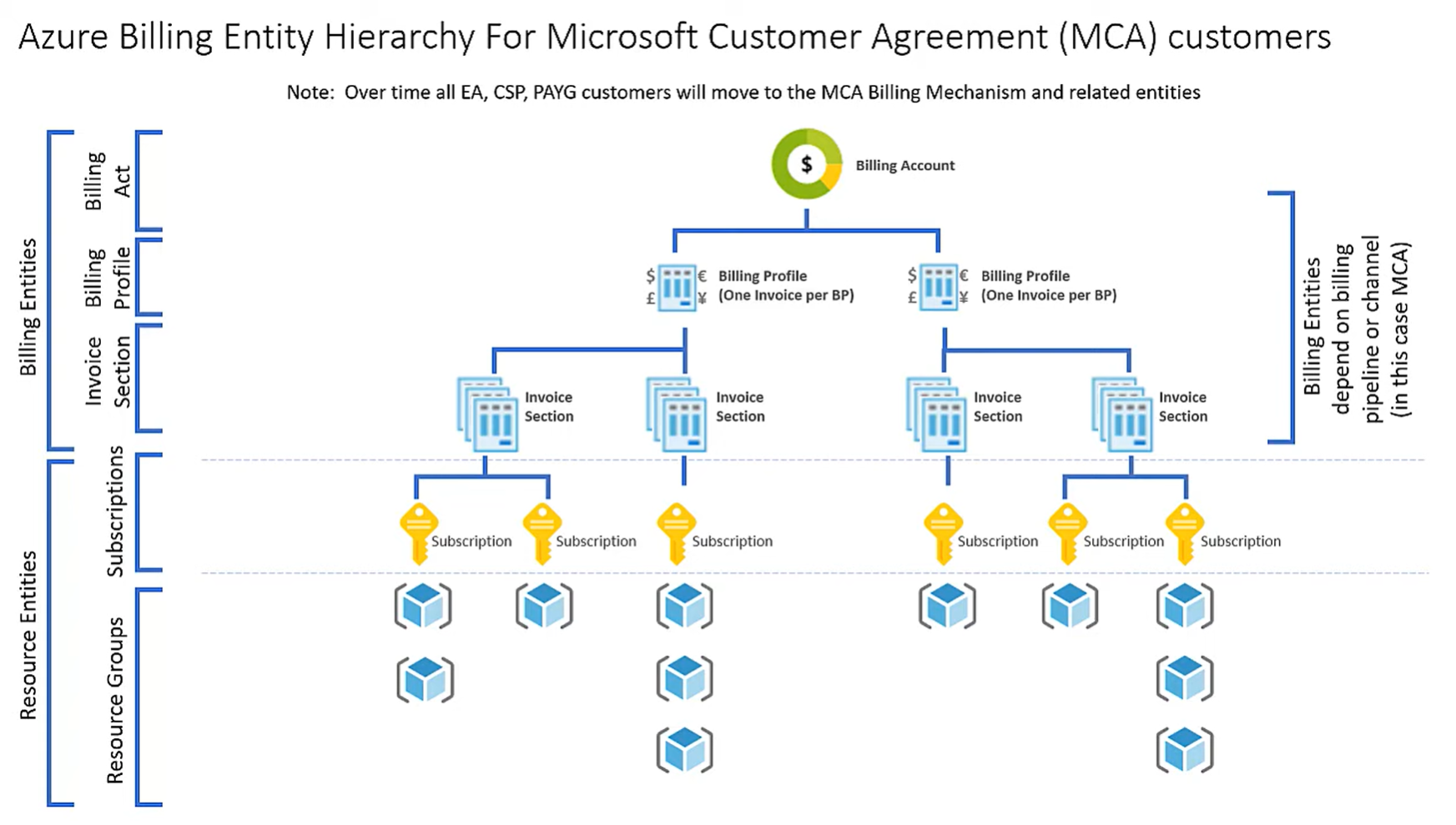 企业协议 (EA) 与 Microsoft 客户协议 (MCA) 的 Azure 计费层次结构是不一样的。