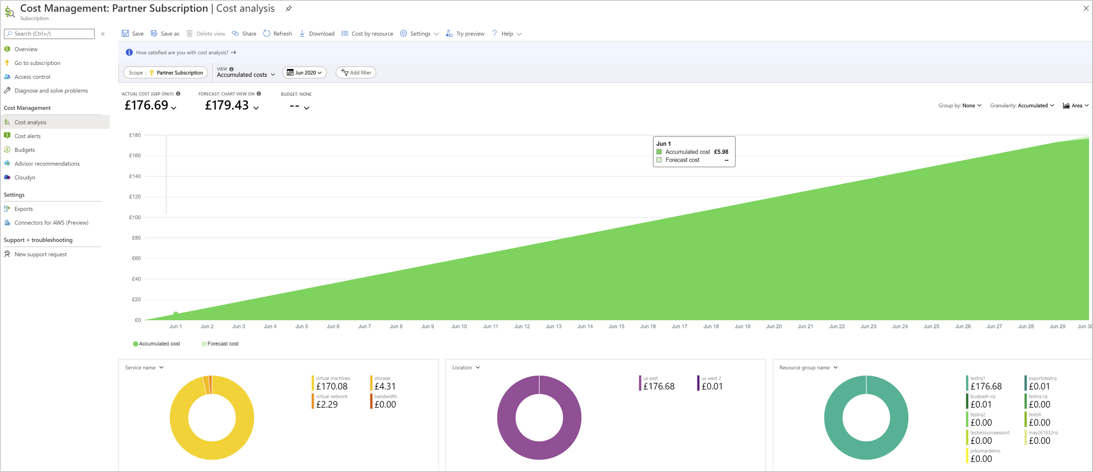 用于计算视图中显示的成本的零售价与适用于所有客户的 Azure 定价计算器中显示的价格相同。 显示的成本不包括合作伙伴可能拥有的任何折扣或额度。