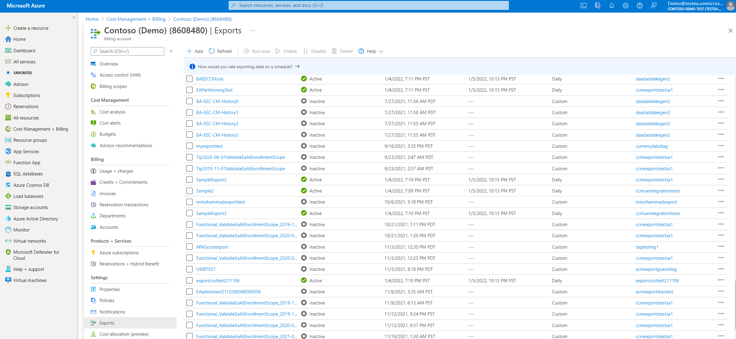 如果要查找原始数据来自动执行业务流程或与其他系统集成,请首先将数据导出到storage帐户。 计划导出功能允许您每天或每月自动将原始成本数据发布到存储帐户。 通过对大型数据集的特殊处理,计划导出是构建一流成本数据集成的最具可扩展性的选项。 有关详细信息,请参阅创建和管理导出的数据。