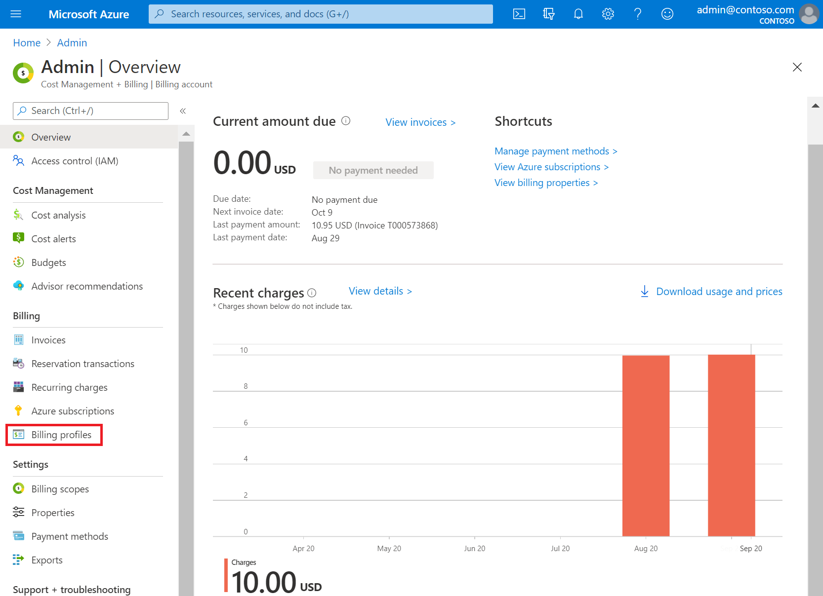 在左侧菜单中的“计费”下,选择“计费配置文件”。
