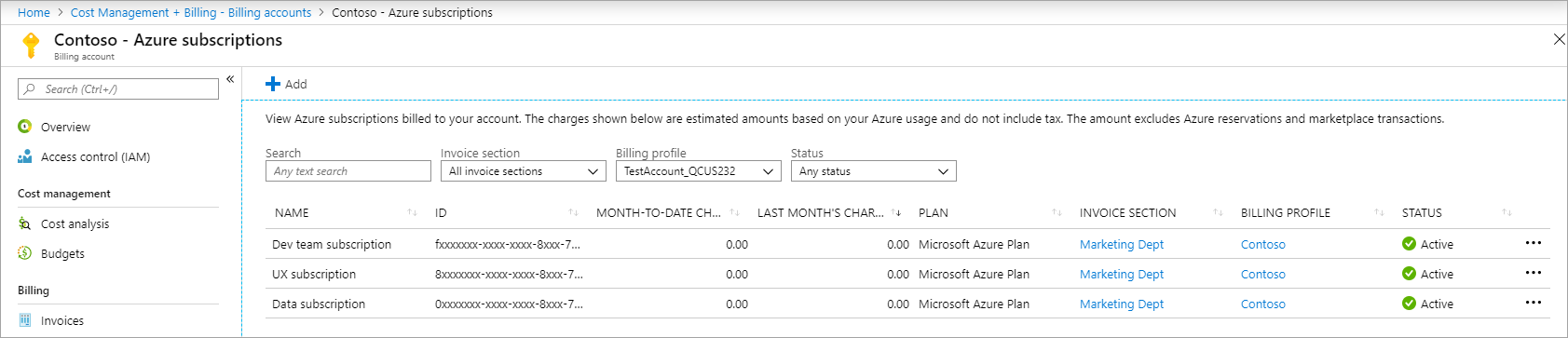 - 你每月会收到一份数字版的费用发票。 可在“成本管理 + 计费”页中查看和分析发票。
