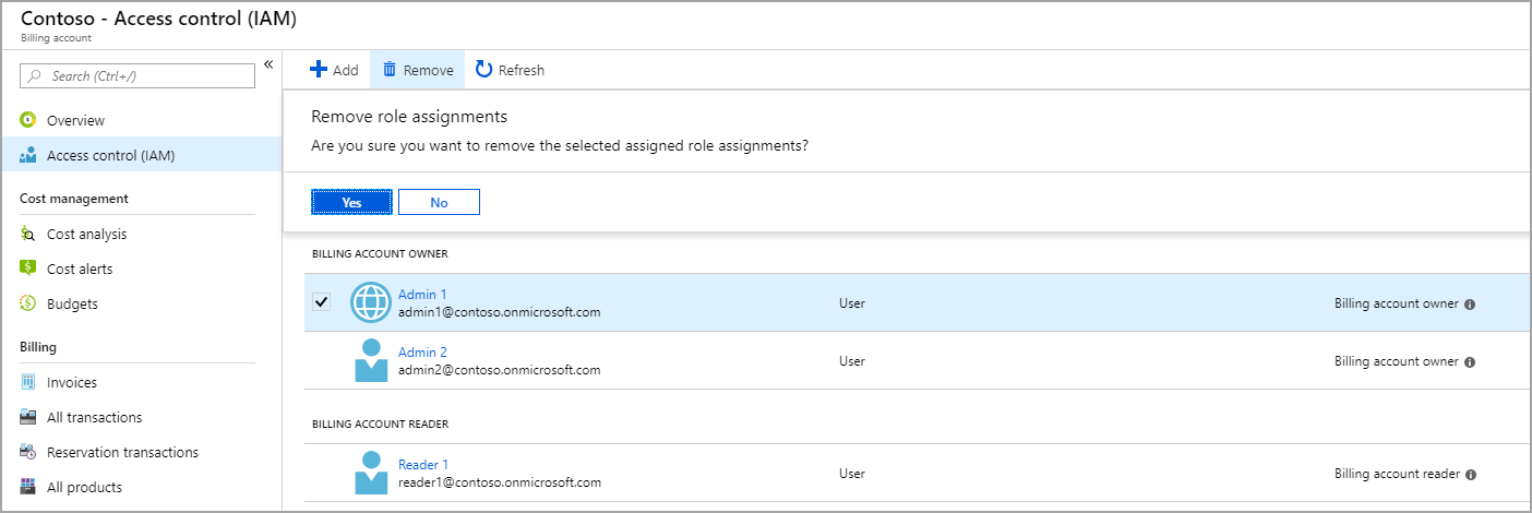 - 若要删除用户的access,请选择具有要删除的角色分配的用户。 在页面顶部选择“移除”。