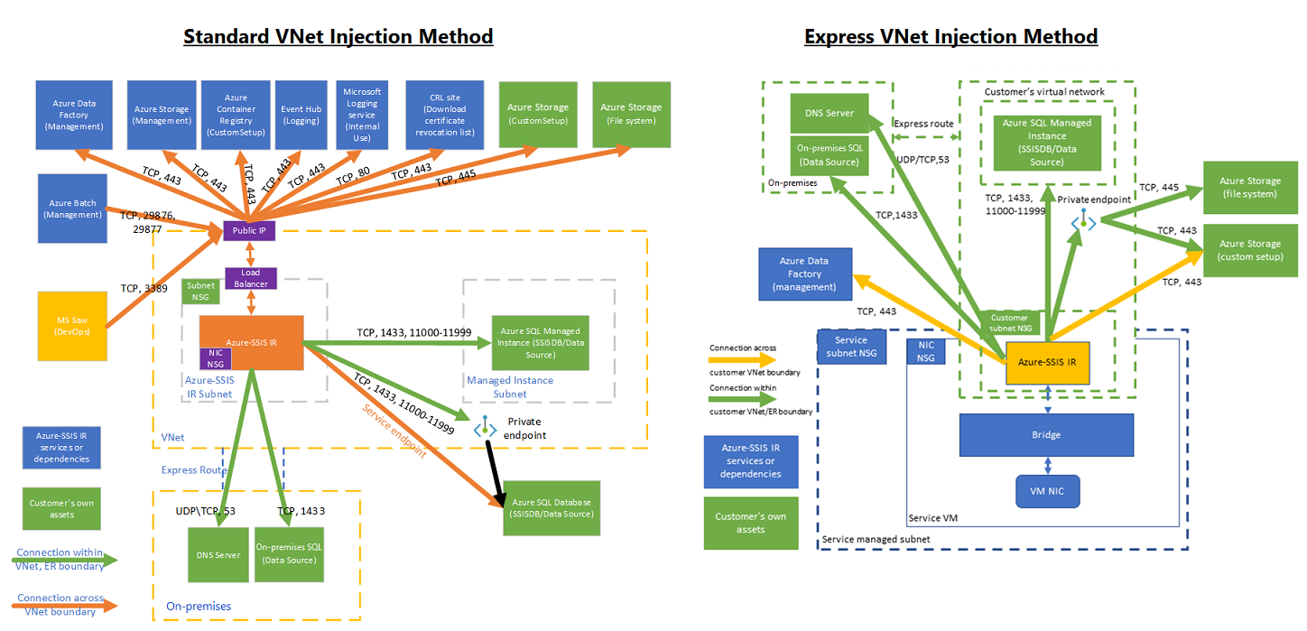 使用 Azure 数据工厂 (ADF) 或 Synapse Pipelines 中的 SQL Server Integration Services (SSIS) 时,可通过两种方法将 Azure-SSIS 集成运行时 (IR) 加入到虚拟网络:标准和快速。 快速选项可以更迅速地启动 Azure-SSIS IR,不需要入站流量,且对出站流量的要求更少,但与标准方式相比,它存在一些限制。