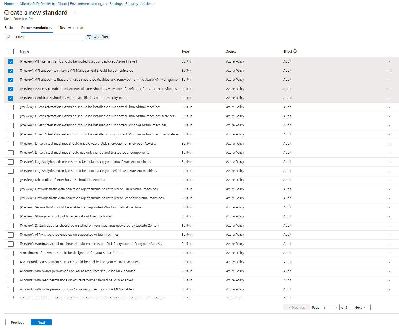 - 要创建新的安全标准,需要对订阅具有所有者权限。
