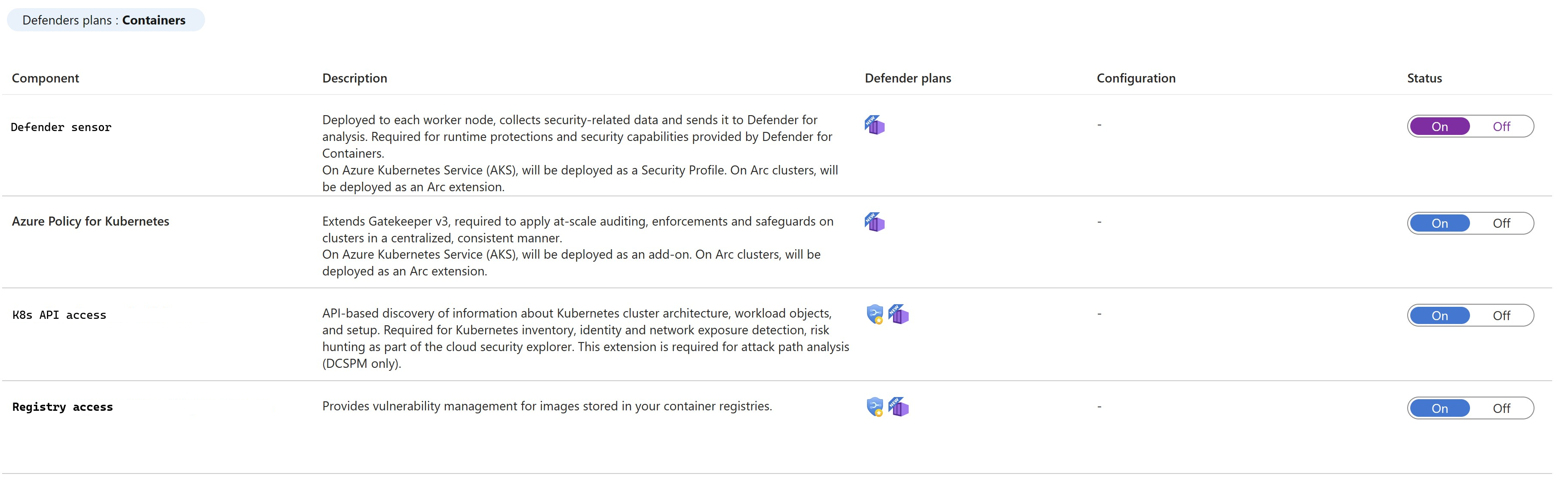 本文介绍如何通过 Azure 门户在已启用 Arc 的 Kubernetes 群集上启用 Microsoft Defender for Containers。 可以选择一次性启用所有安全功能以实现全面的保护,或根据要求有选择地部署特定组件。