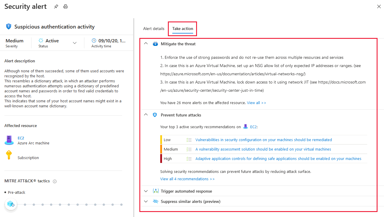 - 缓解威胁 - 为此安全警报提供手动修正步骤