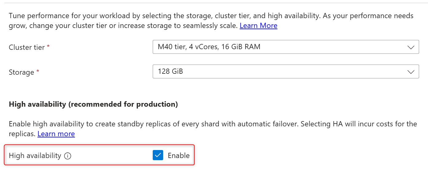 可以根据需要启用或禁用 区域内高可用性(HA )。 区域内 HA 通过维护群集中每个主分片的副本分片来避免数据库停机。 如果主分片出现故障,则传入连接会自动重定向到其副本分片,以确保故障时间最短。