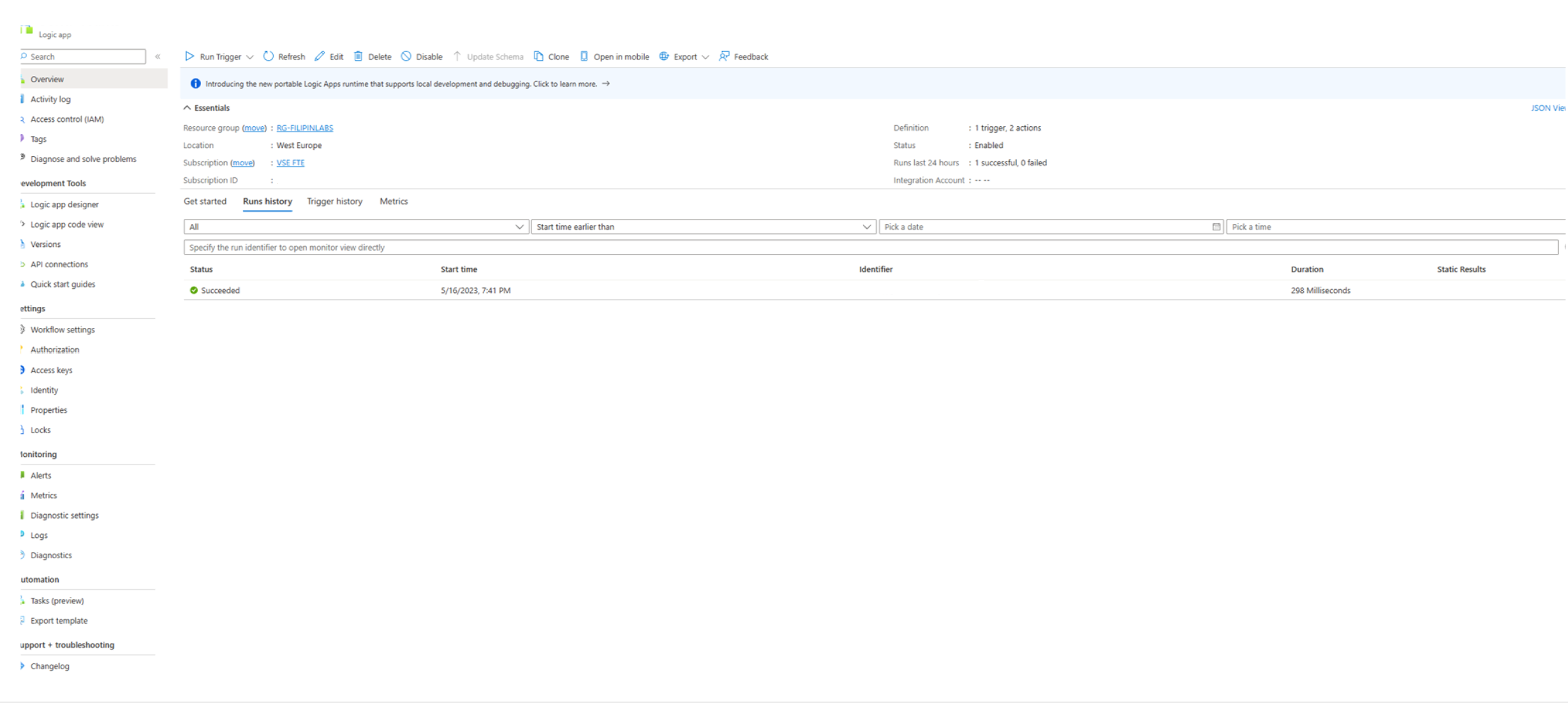 - 选择“保存”以确保存储更改。 逻辑应用现在已准备好在对其链接的访问包进行更新时发送电子邮件。