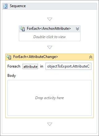 If(objectToExport.AttributeChanges.Contains(schemaAttr.Name), objectToExport.AttributeChanges(schemaAttr.Name).ValueChanges(0).Value.ToString(), String.Empty)它要么提取准备导出的此属性的更改,要么使用空字符串进行初始化。 导出替换工作流如下所示:
