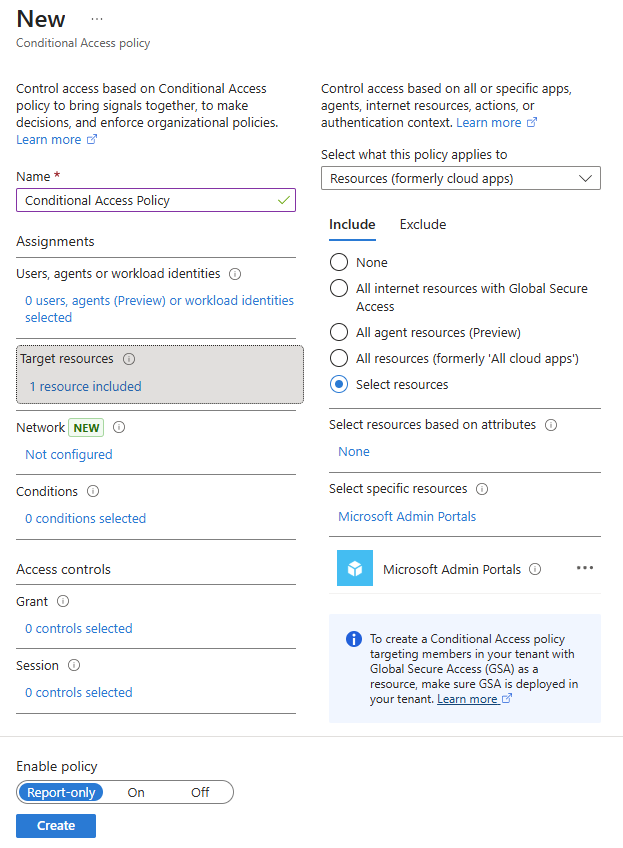 - 条件访问策略不适用于公共客户端本身,而是基于它们请求的资源。