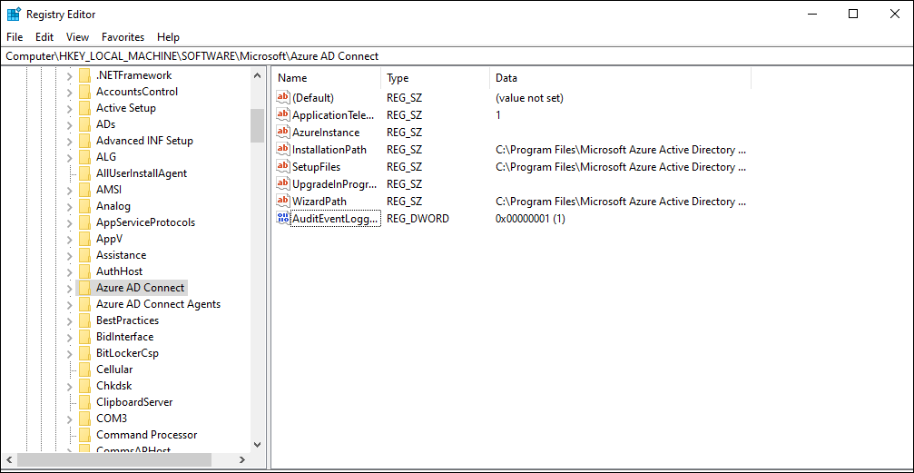 $registryPath = 'HKLM:\SOFTWARE\Microsoft\Azure AD Connect'
