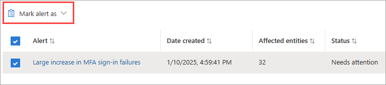 - 使用Microsoft Graph API的等效作是将警报状态更新为