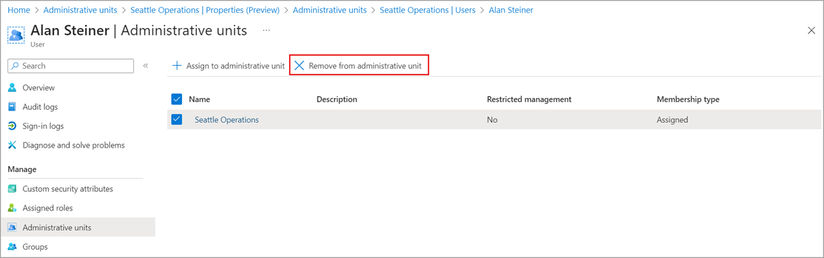 可以使用 Microsoft Entra 管理中心单独从管理单元中移除用户、组或设备。 还可以批量删除用户。