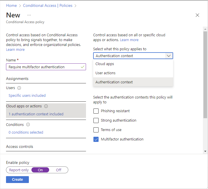 有关详细信息,请参阅条件访问:云应用、操作和身份验证上下文。