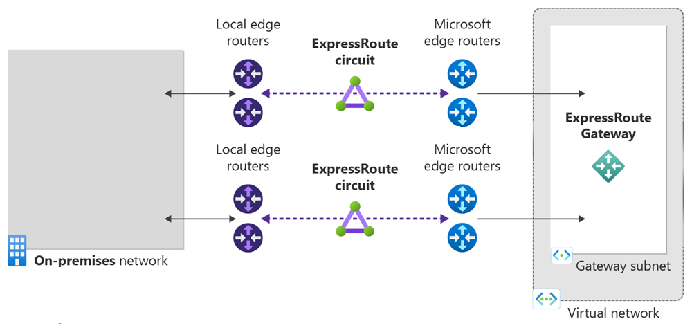 最大复原能力(推荐) - 为 ExpressRoute 连接提供最高级别的复原能力。 它在两个不同的 ExpressRoute 接入点提供两个具有本地冗余的 ExpressRoute 电路。