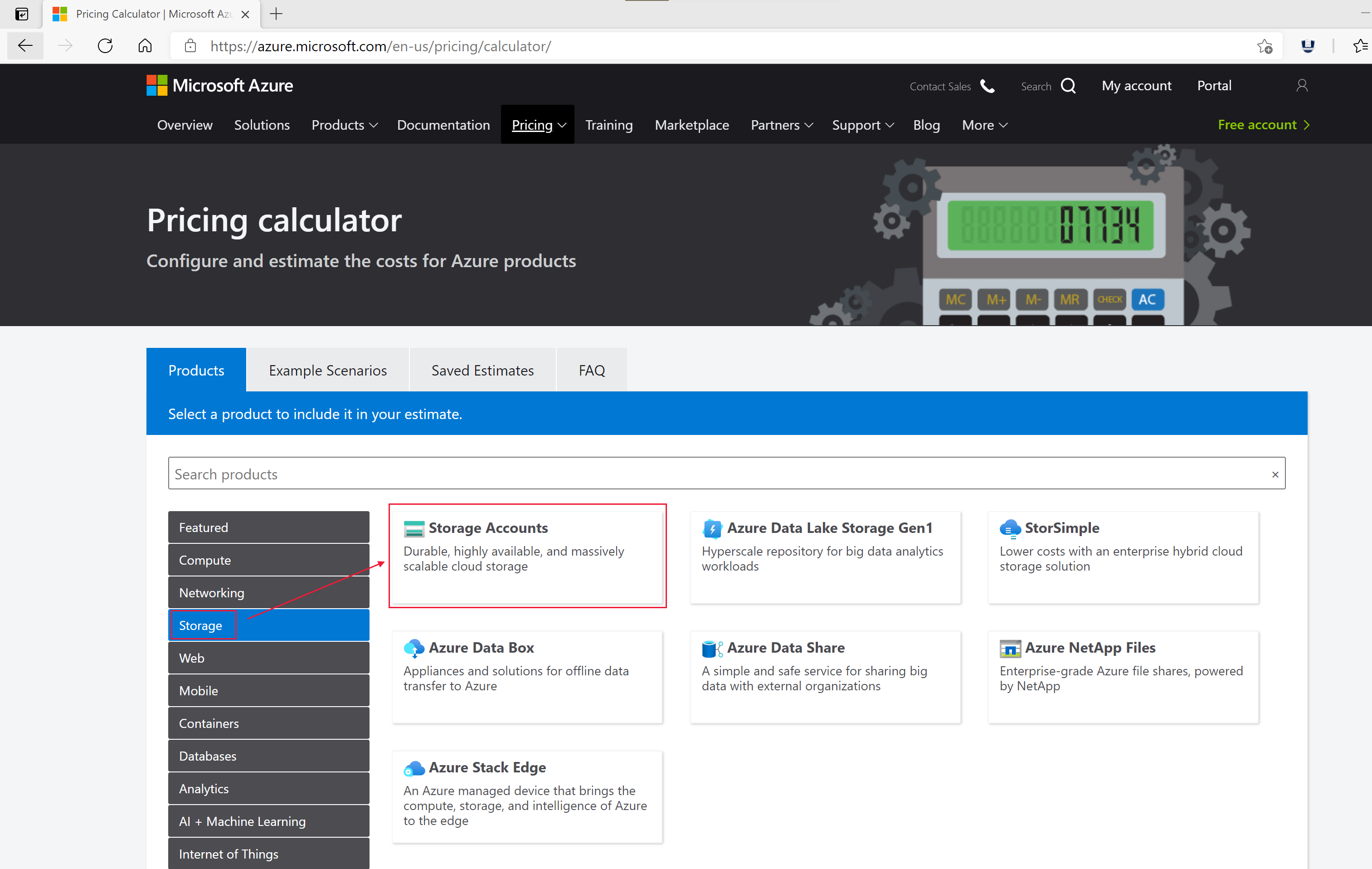 转到 Azure 定价计算器。