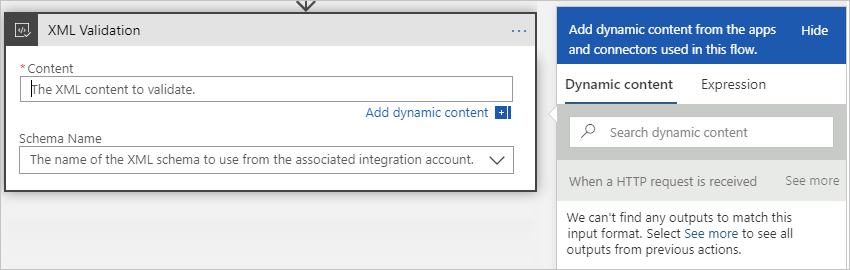 验证 XML 动作会在触发器触发后运行,并且 XML 内容可供验证。