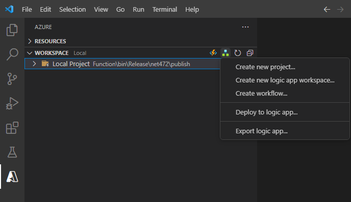 对于此版本,只有 Visual Studio Code 支持 Azure 逻辑应用规则引擎项目的开发体验。 若要满足使用 Visual Studio Code 的先决条件,请参阅使用 Visual Studio Code 在单租户 Azure 逻辑应用中创建标准逻辑应用工作流。