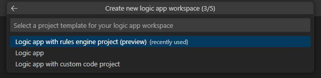 出现 逻辑应用工作区提示框的“选择项目模板 ”时,选择 包含规则引擎项目的逻辑应用。