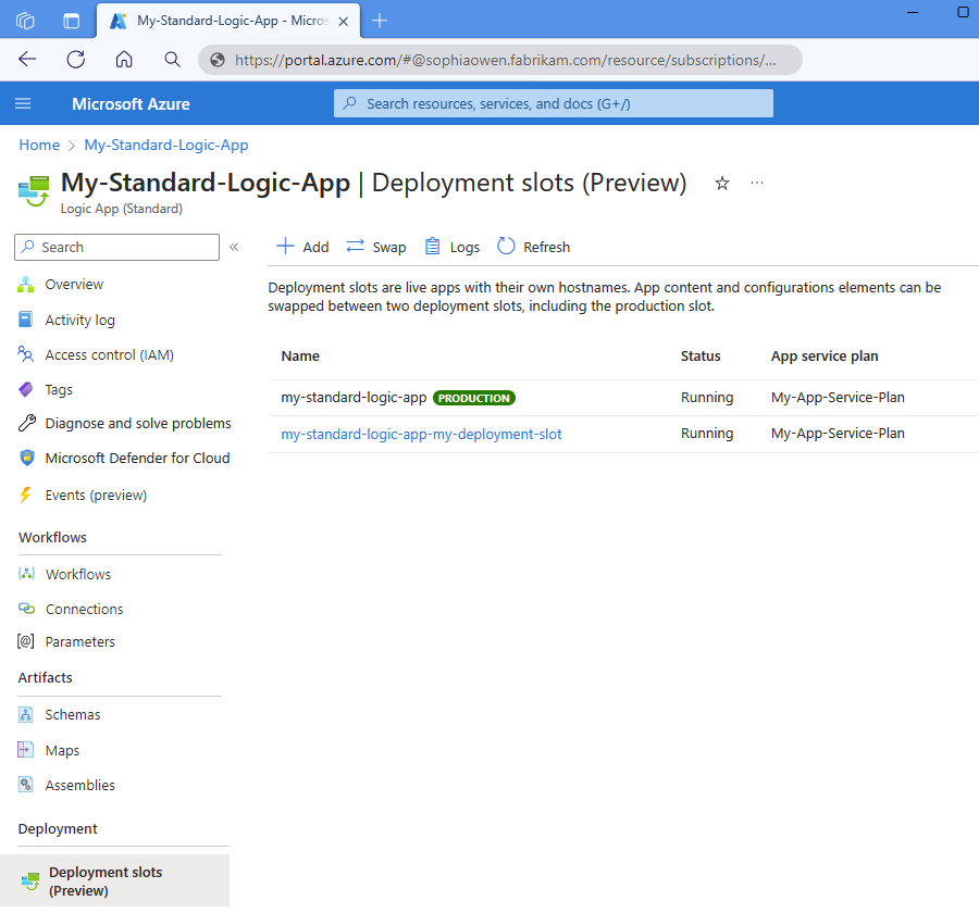 在 Azure 门户中,打开要交换槽的标准逻辑应用资源。