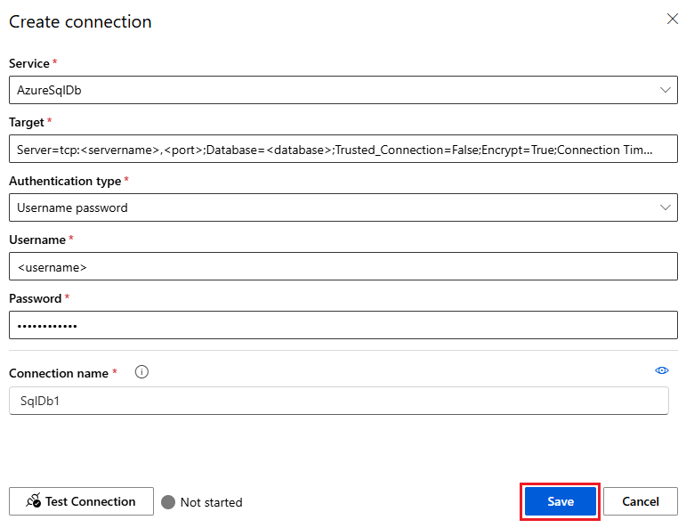 (可选)选择 “测试连接 ”以测试连接,然后选择“ 保存”。