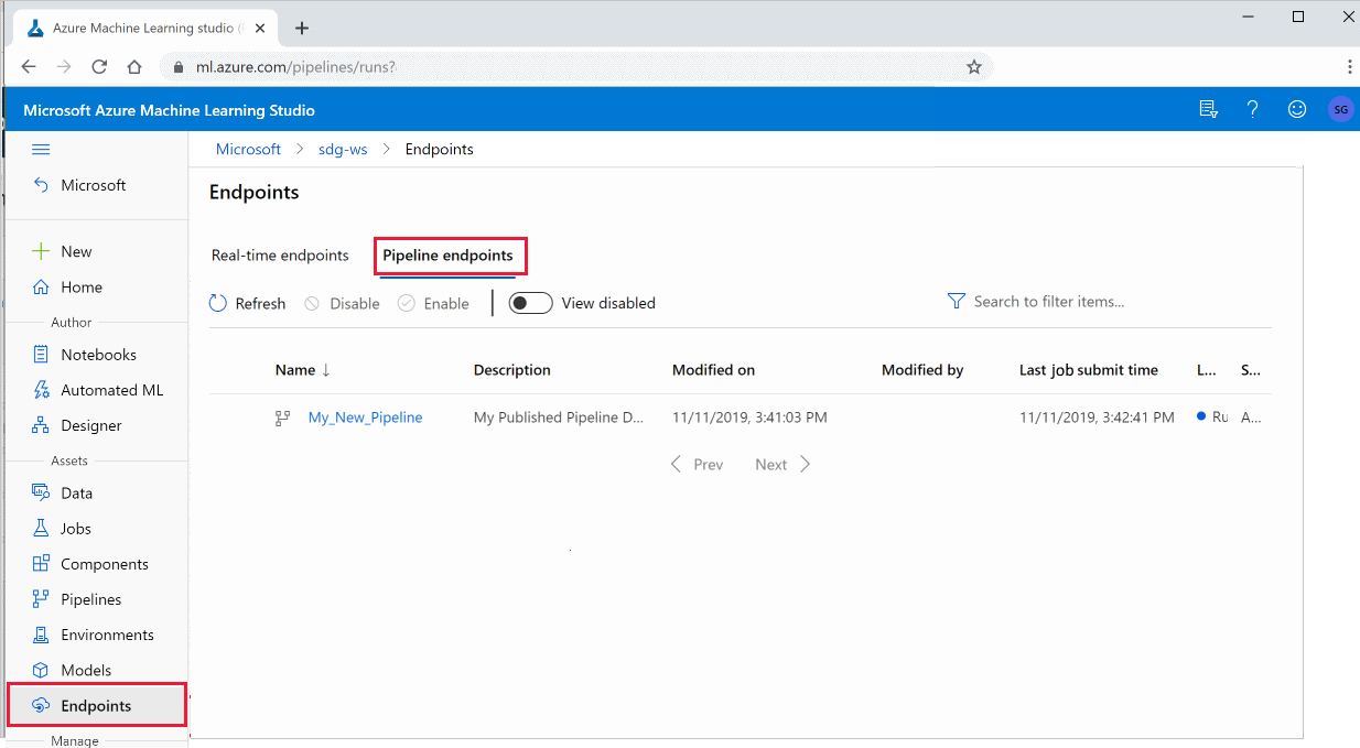 pipeline_endpoint_by_name = PipelineEndpoint.get(workspace=ws, name="PipelineEndpointTest")