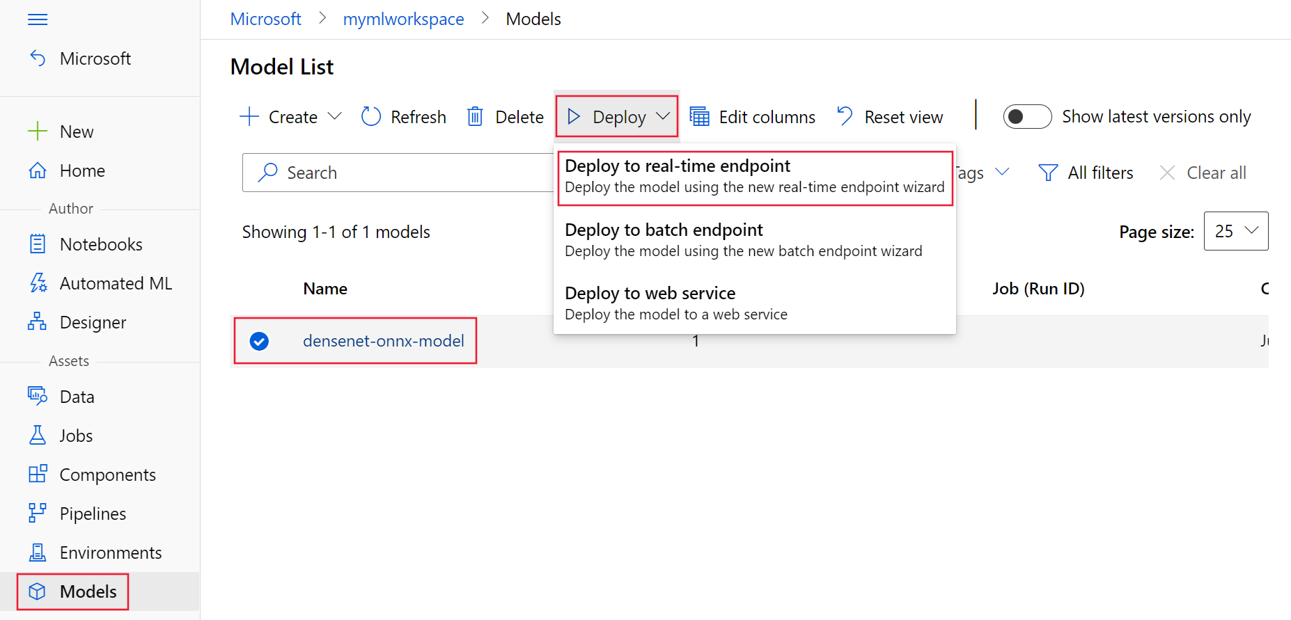 <workspace>替换为 Azure 机器学习工作区名称。 - 将