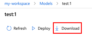 若要下载已注册的模型,请选择“模型”以在 Azure 机器学习工作室中打开“模型列表”,然后选择特定模型,如以下屏幕截图所示:
