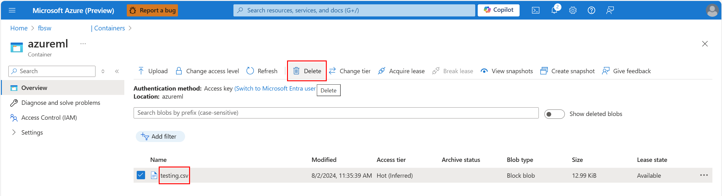 可以注销数据资产和存档作业,但这些操作不会删除数据。 若要完全删除数据,数据资产和作业数据需要在存储级别删除。 如前所述,在门户中进行存储级别删除。 Azure 机器学习工作室可以处理单个删除。 作业删除会删除该作业的数据。