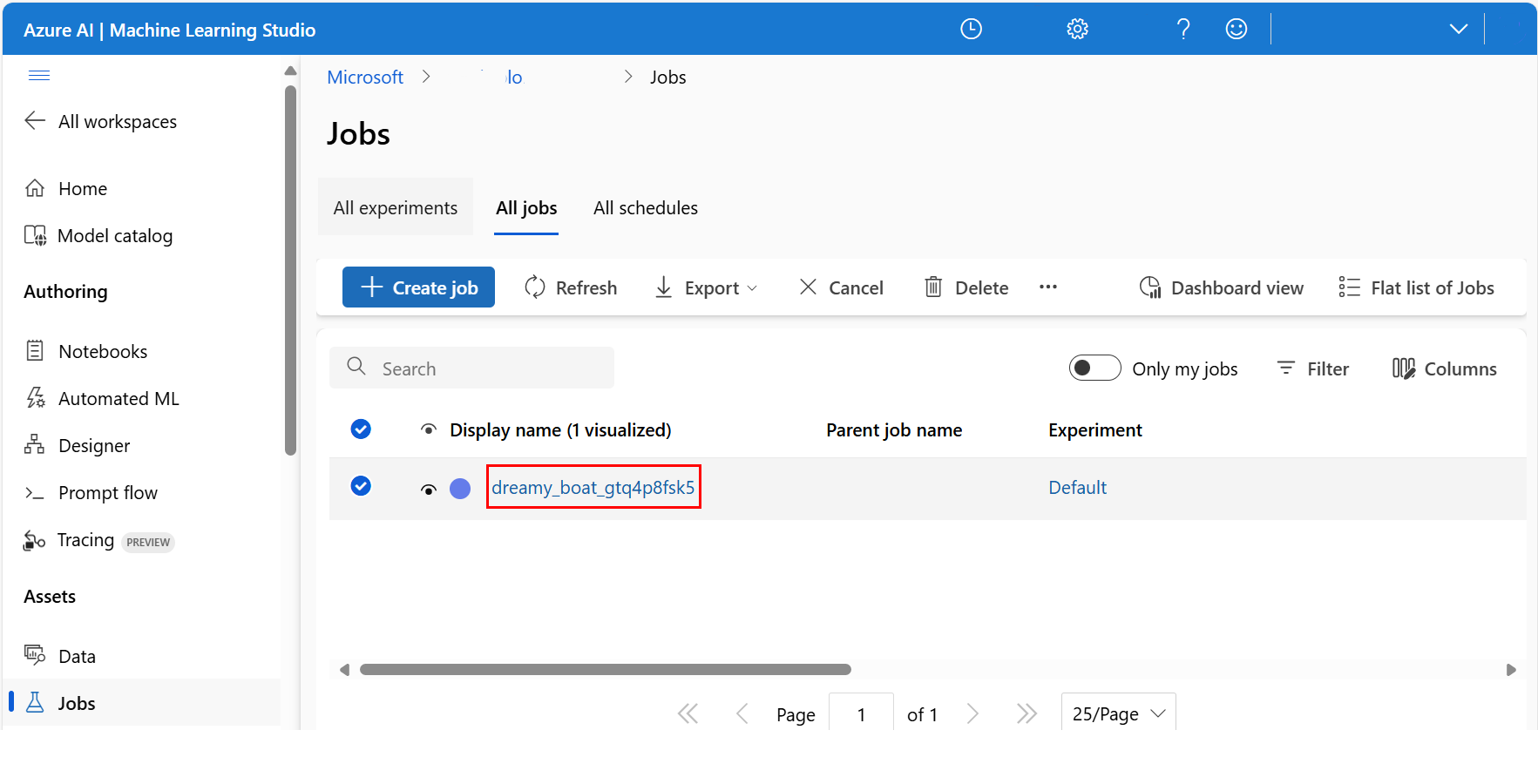 选择特定作业,如以下屏幕截图所示: